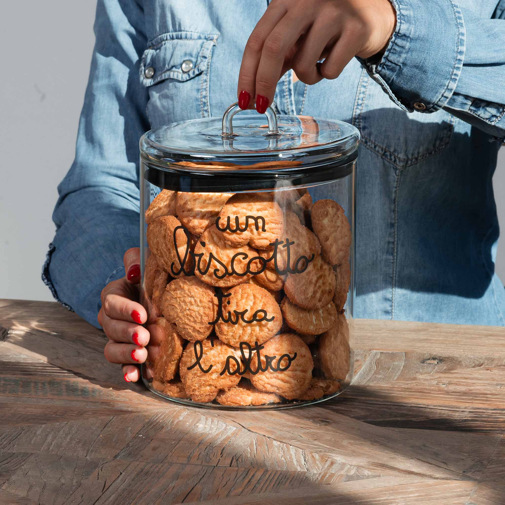 Biscottiera in vetro borosilicato decoro Un biscotto tira l'altro
