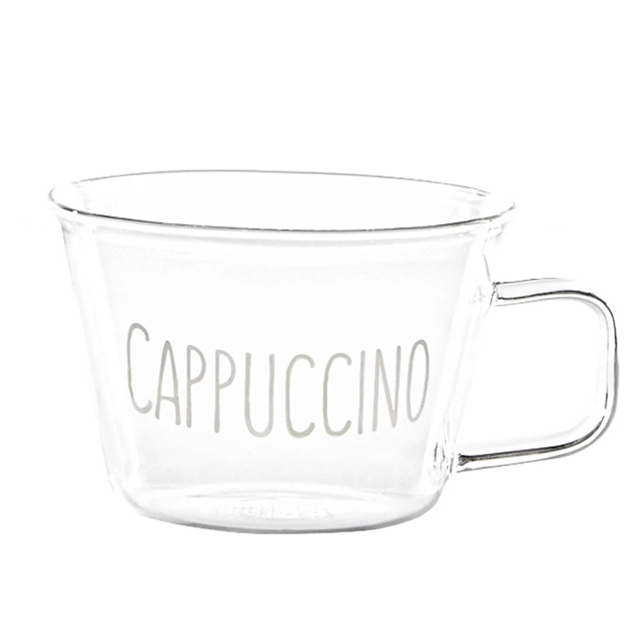 Set 2 tazze cappuccino in vetro borosilicato decoro Cappuccino