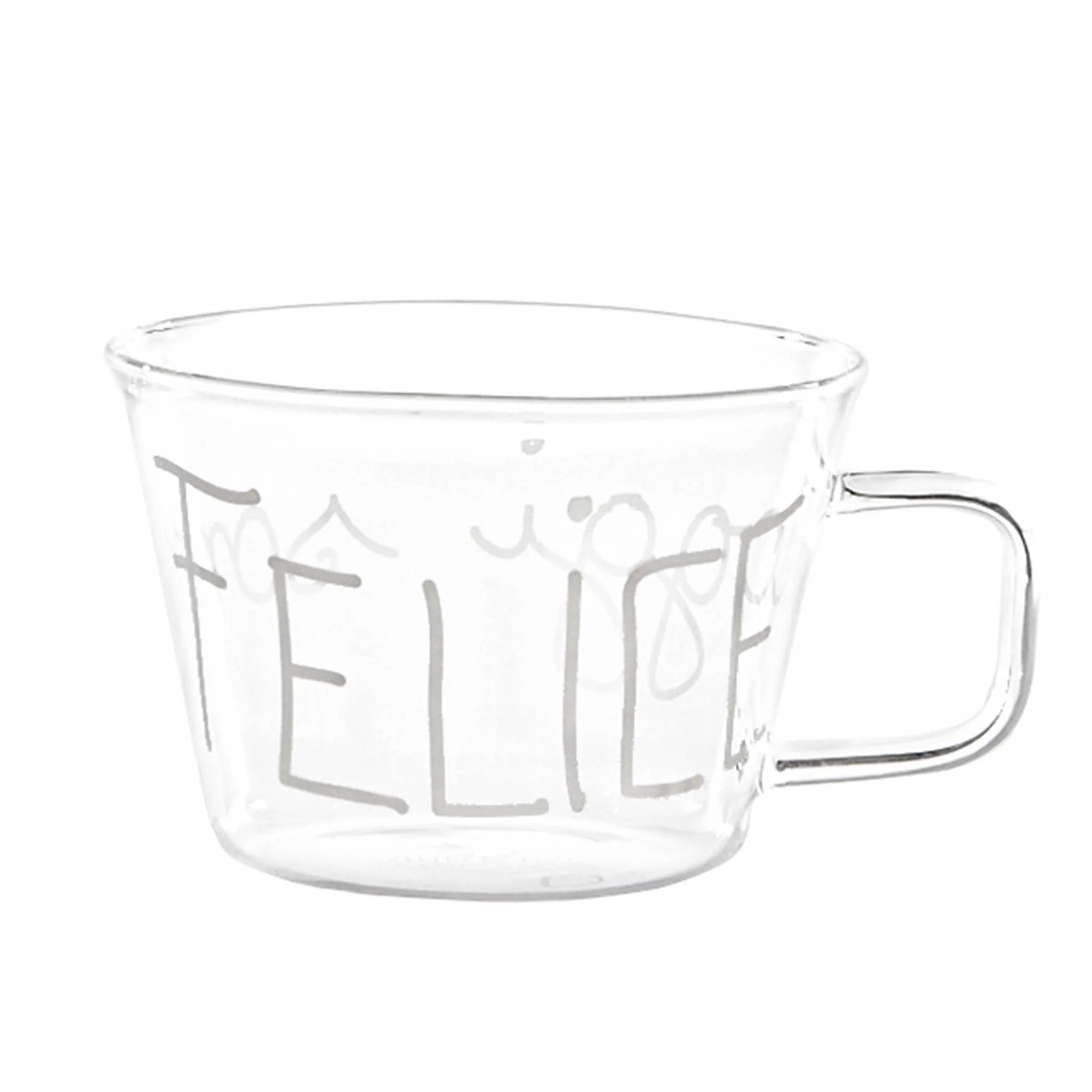 Set 2 tazze tè o cappuccino in vetro borosilicato decoro Oggi Sono Felice