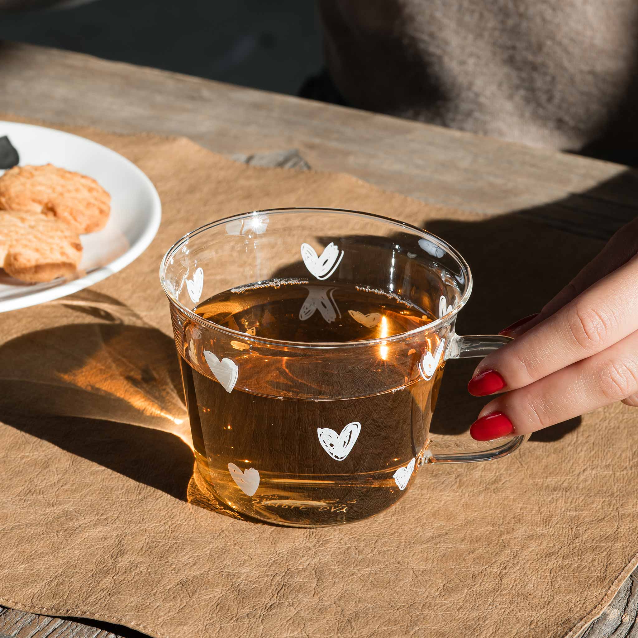 Set 2 tazze colazione in vetro borosilicato decoro Cuori